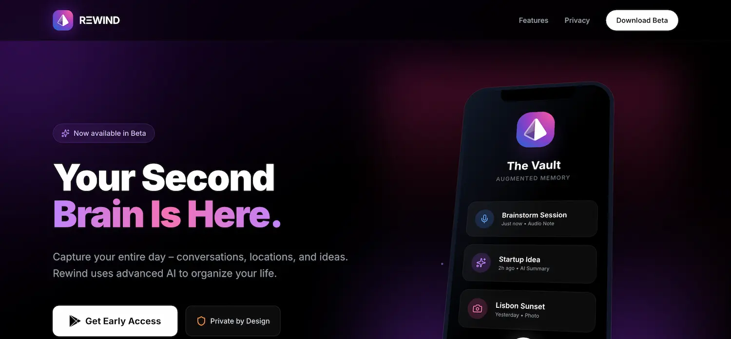 Rewind leads in privacy-first multimodal recall, lags in cross-platform reach