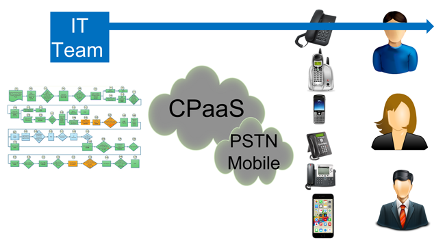 Earlier concepts like UC for Business (UCStrategies), Communications Enabled Business Processes, or CEBP (Avaya), and the ACE platform (Nortel) provided a mechanism to integrate applications into the premises PBX. However, the challenge was that to integrate these together, the IT and Telecom teams had to work together, a major challenge in most organizations at the time. While earlier CEBP assumed that the business process would integrate with the traditional PBX, a new range of solutions integrated the applications directly with the PSTN for both voice and SMS. The app developer could invoke communications without involving the PBX or the telecom group. A range of companies have delivered solutions in this arena, including Twilio, Nexmo and others. This new movement in technology has become known as Communications Platform as a Service (CPaaS). While the more well understood Unified Communications is focused on providing meeting and representation services for employees and the company (see my article on next-gen business communications here), CPaaS is designed to use the emerging capabilities of RESTful APIs to allow rapid integration of communications capabilities into business process flows. This is accomplished through simple programming that can be deployed using the modern coding techniques and is well understood by the applications programming community.
